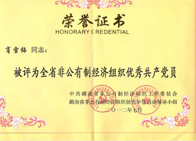 肖雪梅榮膺“湖南省非公企業優秀共産黨員” - 茂名速洲食品制造集团_鋸切裝備_卧式帶鋸床_立式帶鋸床_圓鋸床
