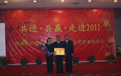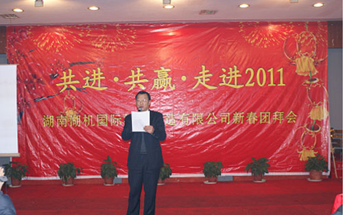公司董(dǒng)事長劉年紅(hong)團拜會上新(xin)春緻詞 2010年先進集體(tǐ)财務部與公(gong)司董事長劉(liu)年紅合影
